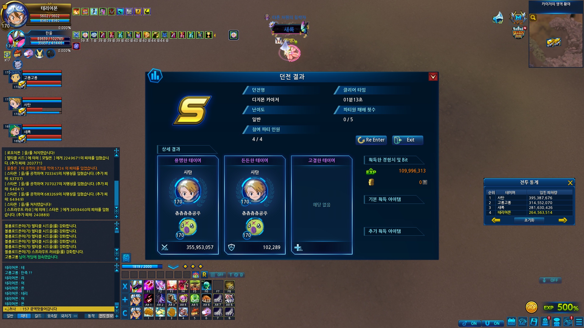 1- 던전 입장 후 우드몬 5마리 를 광역기를 사용하여 딸깍합니다.