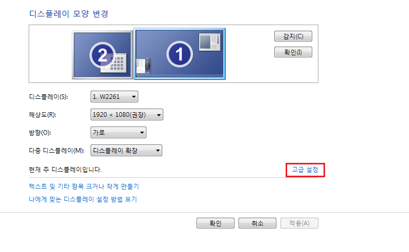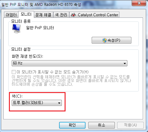 [게임접속] 모니터 품질을 32비트로 하라고 해요(윈도우7)
